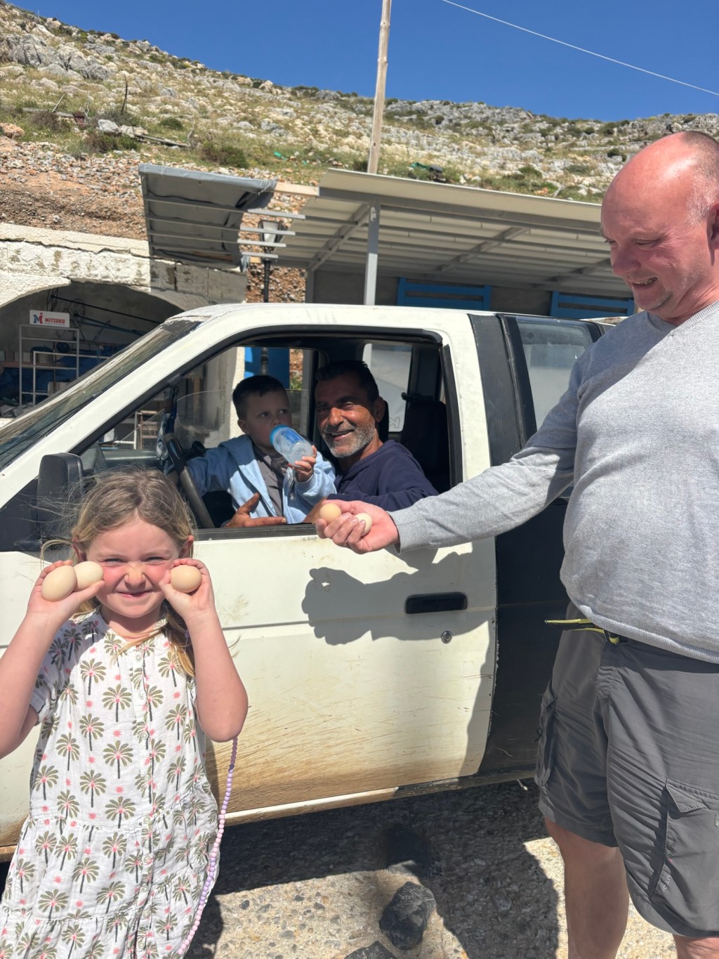 The next morning, just before we left, one of the brothers came by with his child, bringing us fresh eggs from their own chickens. A quiet, thoughtful goodbye.
